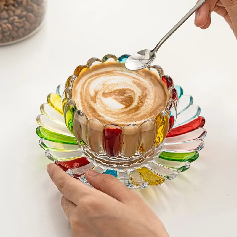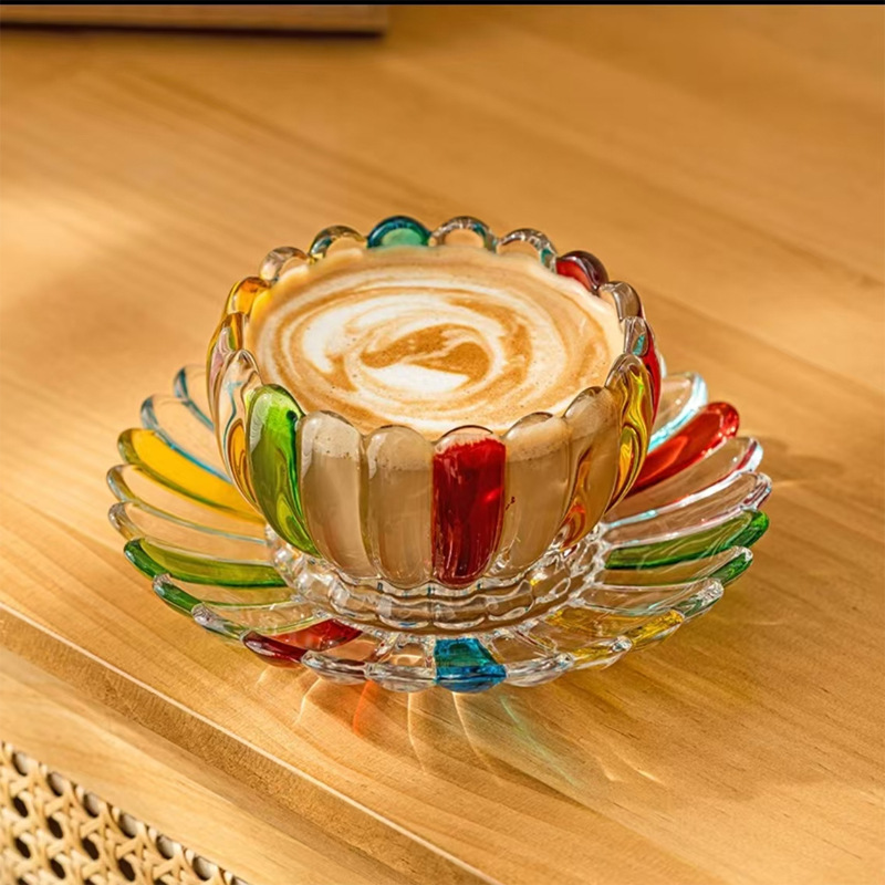 Kolmemõõtmeline lillelise tekstuuriga disain. Nii tassil kui alustassil on selgelt määratletud kolmemõõtmeline kumer kroonlehe tekstuur, samas kui lai suu parandab üldist esteetikat ja tagab libisemisvastase pinna.